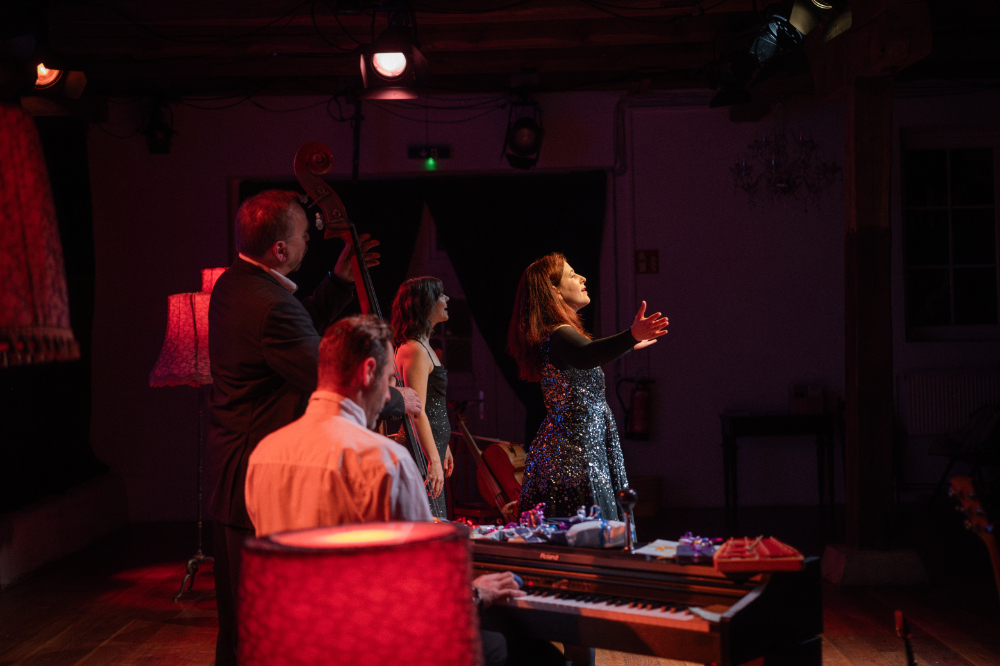 Anja Imig, Thomas Matschoss, Marit Persiel, India Eva-Maria Roth und Maurice Schneider, im Sommer noch als Aliens im Landkreis Uelzen unterwegs, packen ihre Instrumente aus, ölen ihre Stimmbänder und verwandeln das Jahrmarkttheater in einen glitzernden Ballsaal.