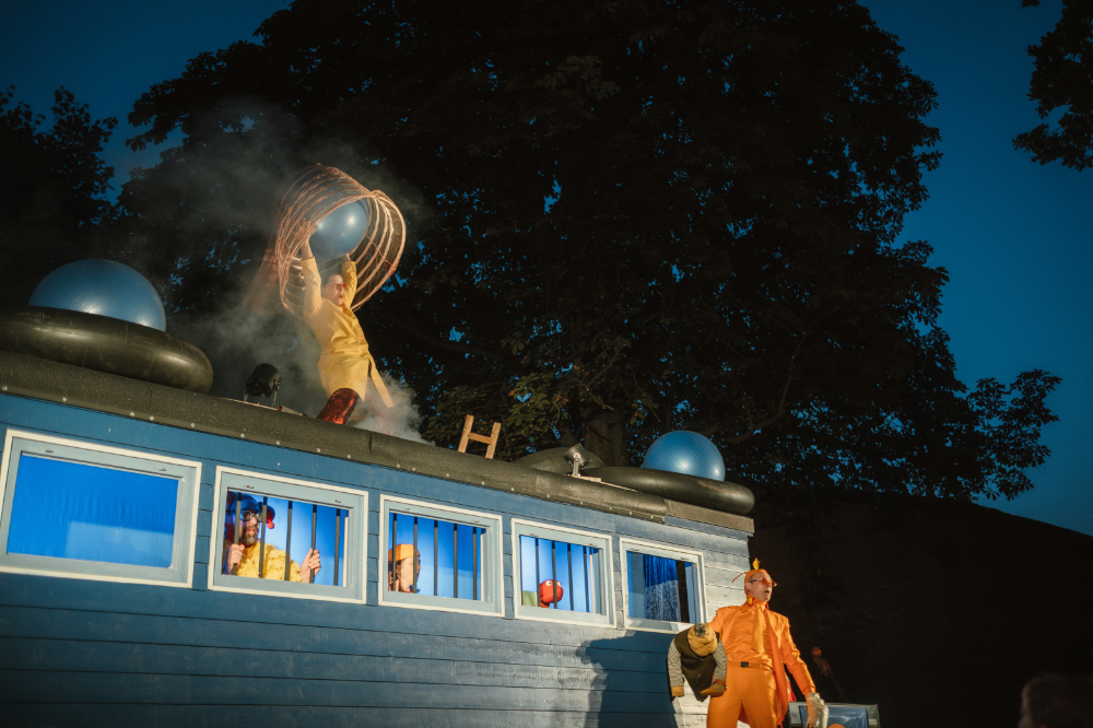 Diesen Sommer entern Aliens die Dorfplätze der Ostheide! Das Jahrmarkttheater verwandelt seinen Blauwagen in ein Raumschiff und feiert mit “Songs for Aliens” das Fremde! Die Open-Air-Show erzählt urkomisch und mit viel Musik von der Sehnsucht nach Zugehörigkeit und der Freude am Anderssein. Fünf Schauspieler und Schauspielerinnen spielen 74 Aliens und mehr als ein Dutzend Instrumente. Die Songs erzählen von der Schönheit der Milchstraße, von der Lust unterwegs zu sein und von allem, was Aliens und Menschen trotz aller Unterschiede verbindet. „Songs for Aliens“ ist ein herrlich schräges, poetisches und sehr musikalisches Open – Air – Theaterabenteuer!
