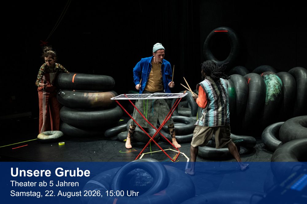 pulk fiktion – ausgezeichnet 2025 mit dem Taboripreis, dem renommiertesten Preis der Freien Theaterszene – bringt das Bilderbuch „Unsere Grube" von Emma AdBåge auf die Bühne.